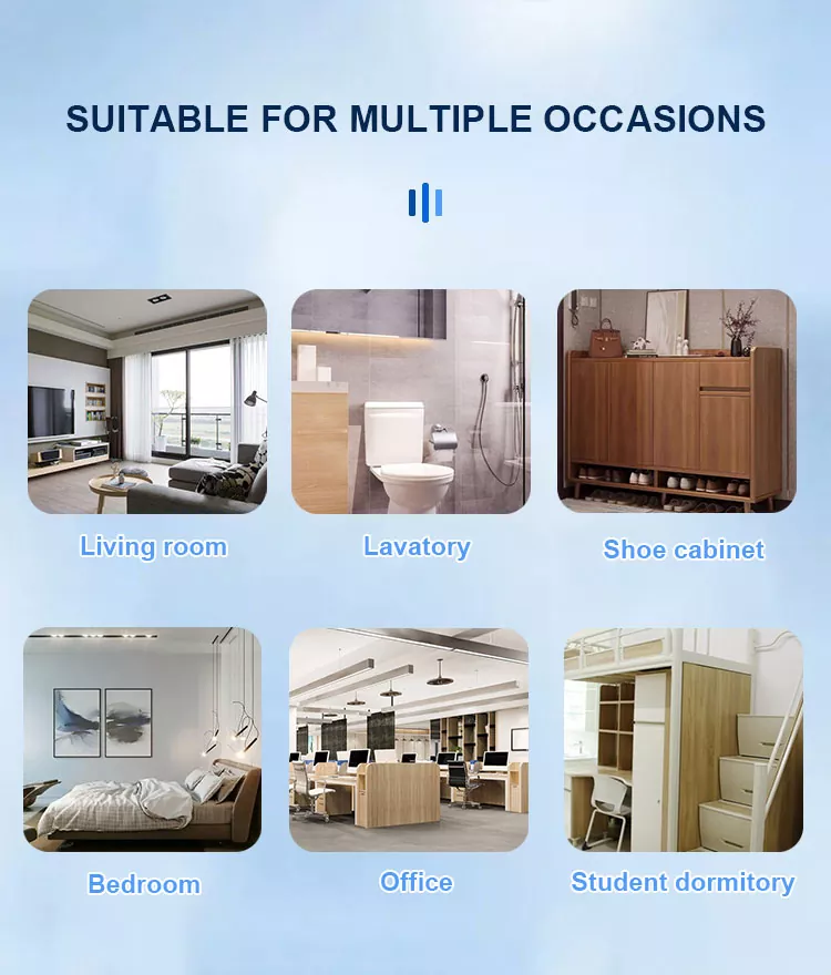 1. 패밀리 사용 : 거실, 침실, 주방 및 기타 가정 공간에 배치하면 연기 냄새, 냄새, 수분 등을 효과적으로 제거 할 수 있습니다.