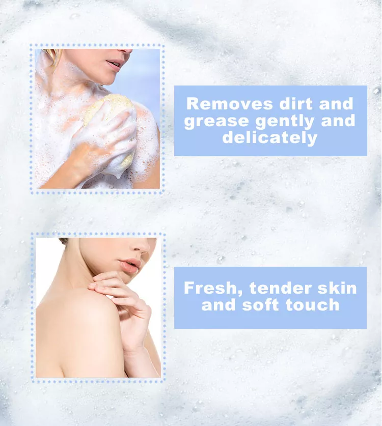 천연 에센셜 오일 + 화시 바이오-뉴 히알루론산은 히알루론산이 워시 타입 제품에 머물지 못하는 문제를 완전히 해결하고, 피부의 수분을 500-1000배 잠그는 능력을 향상시키고, 피부의 수분 및 보습 능력을 향상시키며, 과도한 세정을 방지하고 피부 장벽을 보호할 뿐만 아니라, 근육 바닥에 침투하여 수분을 보충하고, 피부에 지속적으로 수분과 영양을 공급합니다.