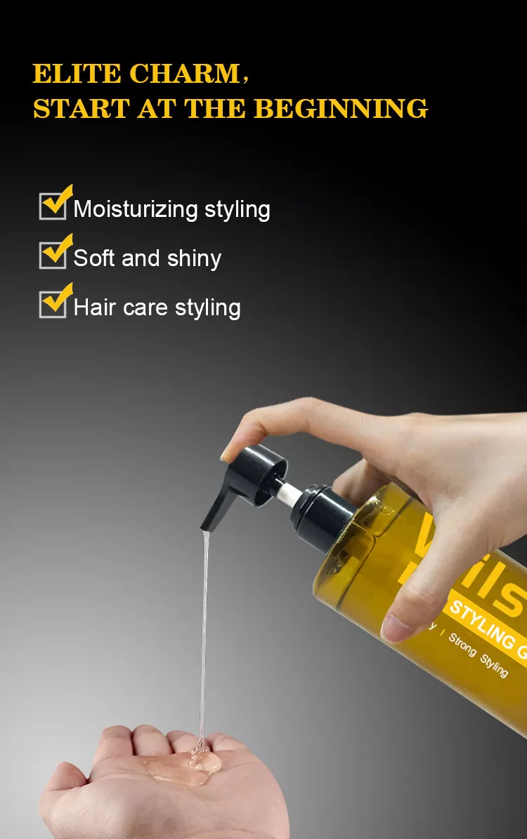 윌슨 남성용 울트라 스무스 심리스 헤어 스타일링 젤 화장품은 화장품의 헤어 스타일링 및 수정 효과를 말하며, 모발에 뿌리거나 바르고, 용제 증발 및 건조를 통해 모발에 투명한 필름을 형성하여 모발 섬유가 굳어지고 목적에 맞는 형태를 유지하도록 하여 다양한 헤어스타일의 요구를 충족시킵니다.