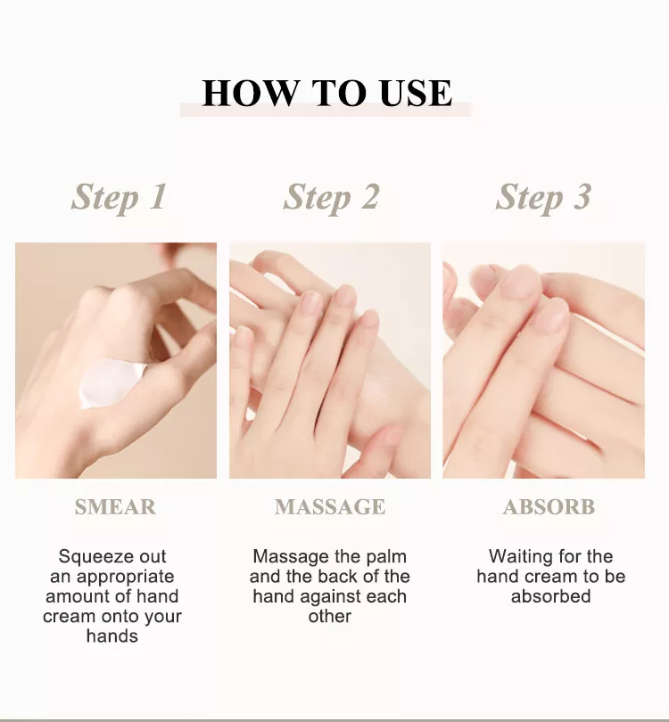 퀵흡수 즉시안심 핸드크림은 우유와 비슷한 크리미한 질감을 갖고 있으며, 사용방법은 다음과 같습니다.